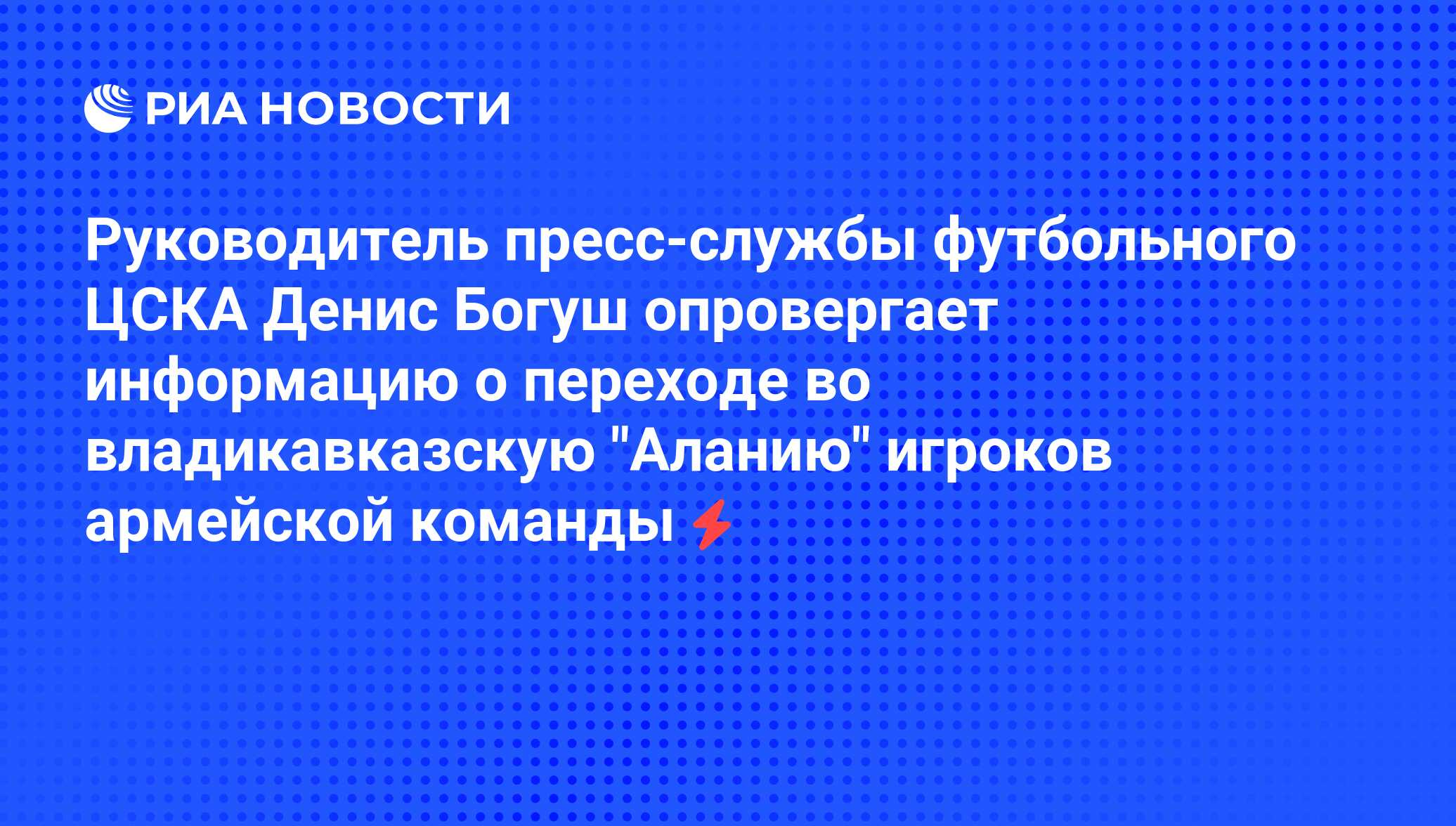 Руководитель пресс-службы футбольного ЦСКА Денис Богуш опровергает информацию о переходе во владикавказскую "Аланию" игроков армейской команды