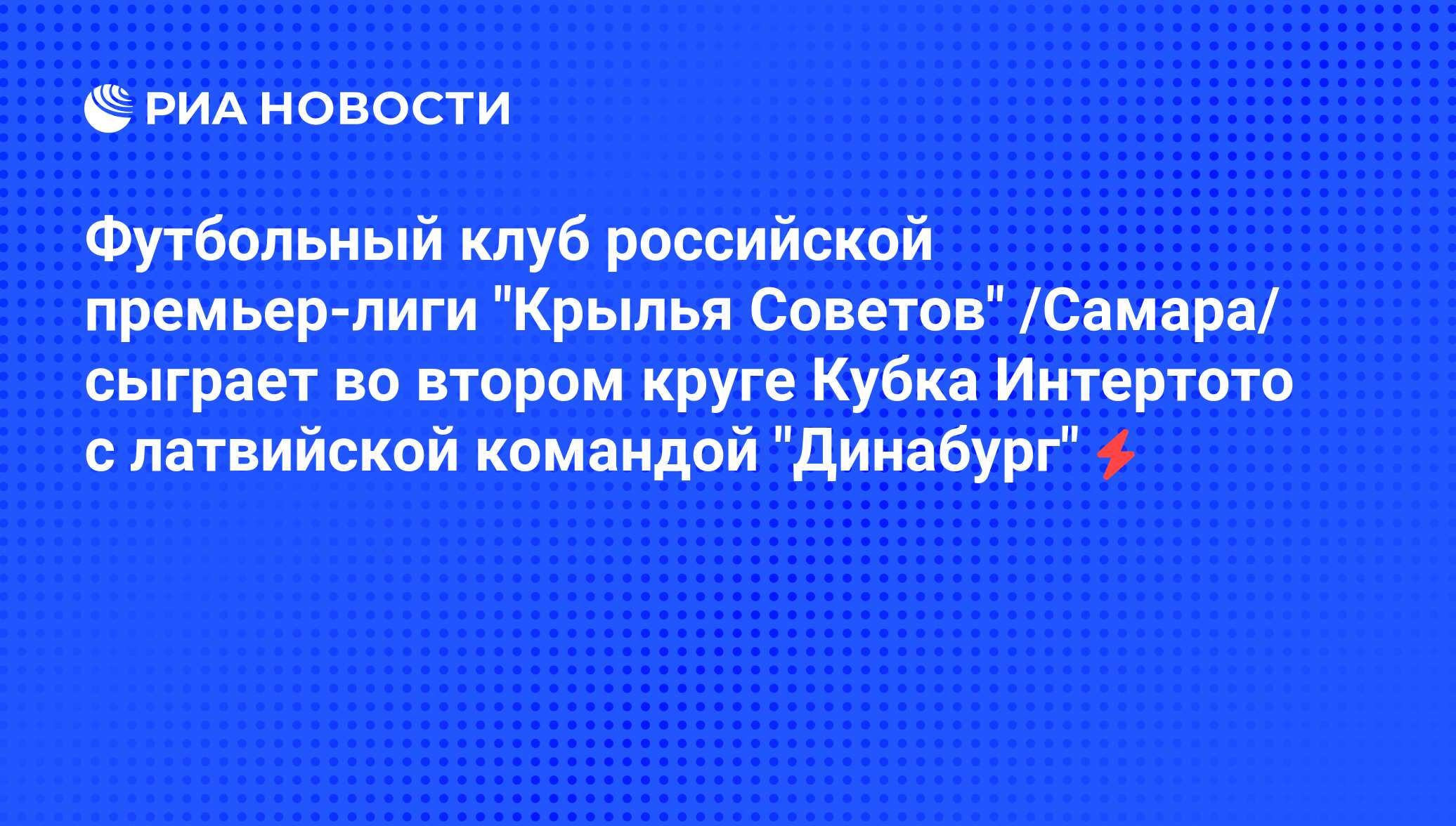 Футбольный клуб российской премьер-лиги "Крылья Советов" /Самара/ сыграет во втором круге Кубка Интертото с латвийской командой "Динабург"
