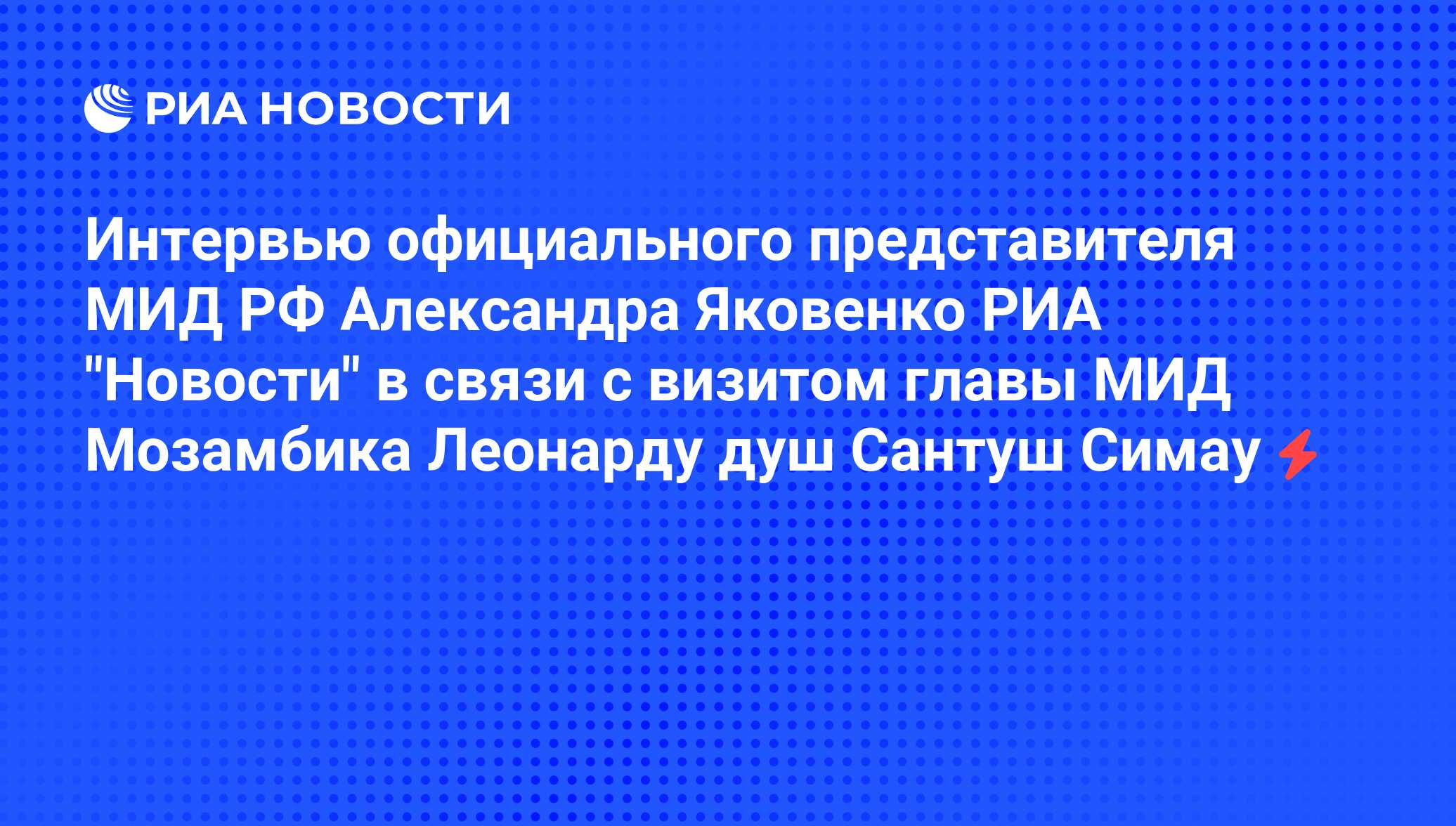 - Рассчитываем, что намеченный на 15-19 октября по приглашению министра иностранных дел Российской Федерации Игоря Иванова официальный визит министра иностранных дел и сотрудничества Республики Мозамбик Леонарду душ Сантуш Симау придаст новый импульс российско-мозамбикским отношениям в русле курса России на активизацию африканского вектора ее внешней политики.