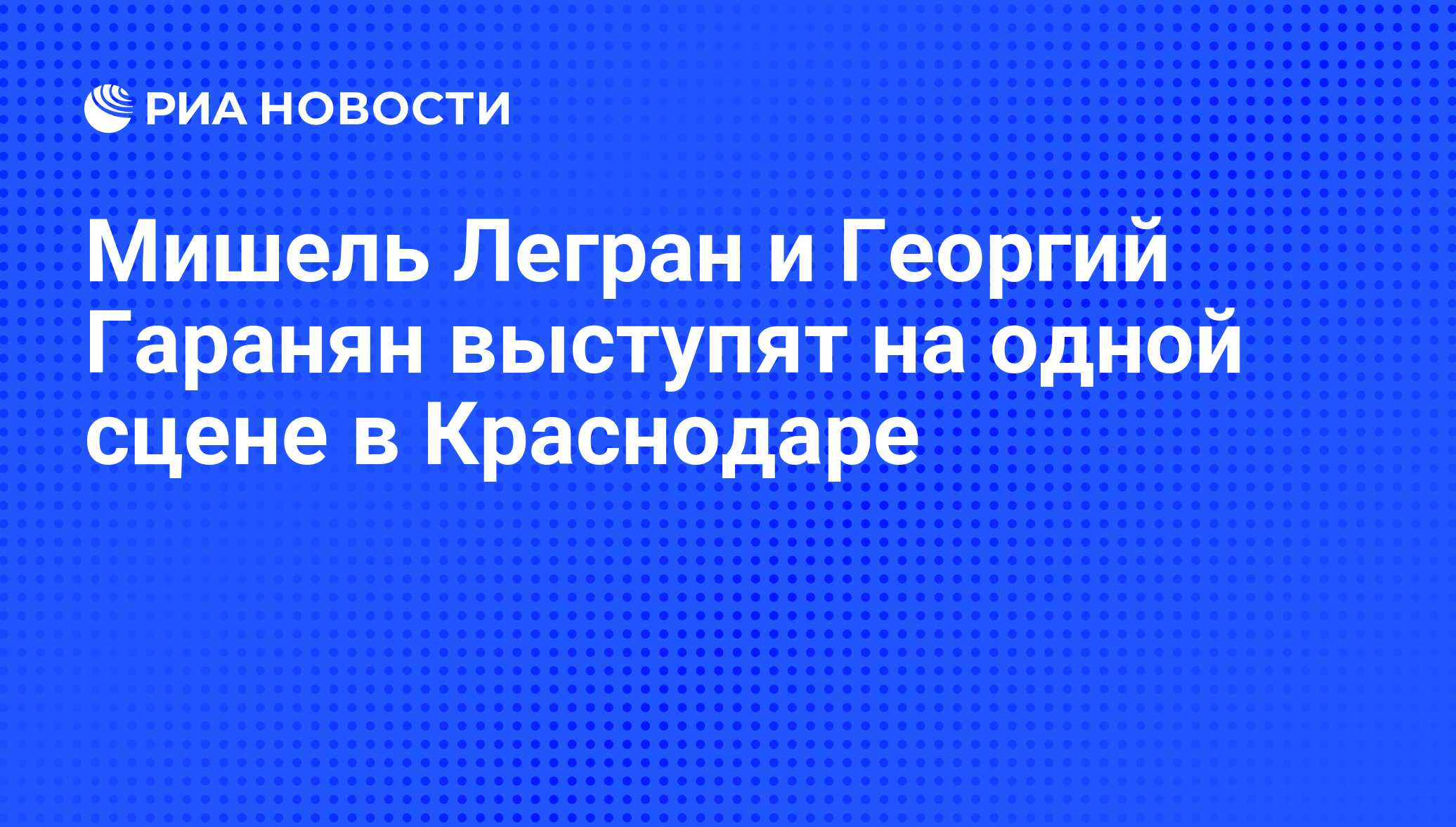 ЕРЕВАН, 30 авг - РИА Новости, Гамлет Матевосян. Известный французский композитор, пианист, аранжировщик и певец армянского происхождения Мишель Легран в конце сентября вместе с оркестром приедет в Краснодар для участия в совместном концерте с Краснодарским биг-бендом под управлением Георгия Гараняна, сообщил в воскресенье информационный центр газеты армян России "Еркрамас" со ссылкой на гендиректора и худрука ТО "Премьера", заслуженную артистку РФ Татьяну Гатову.