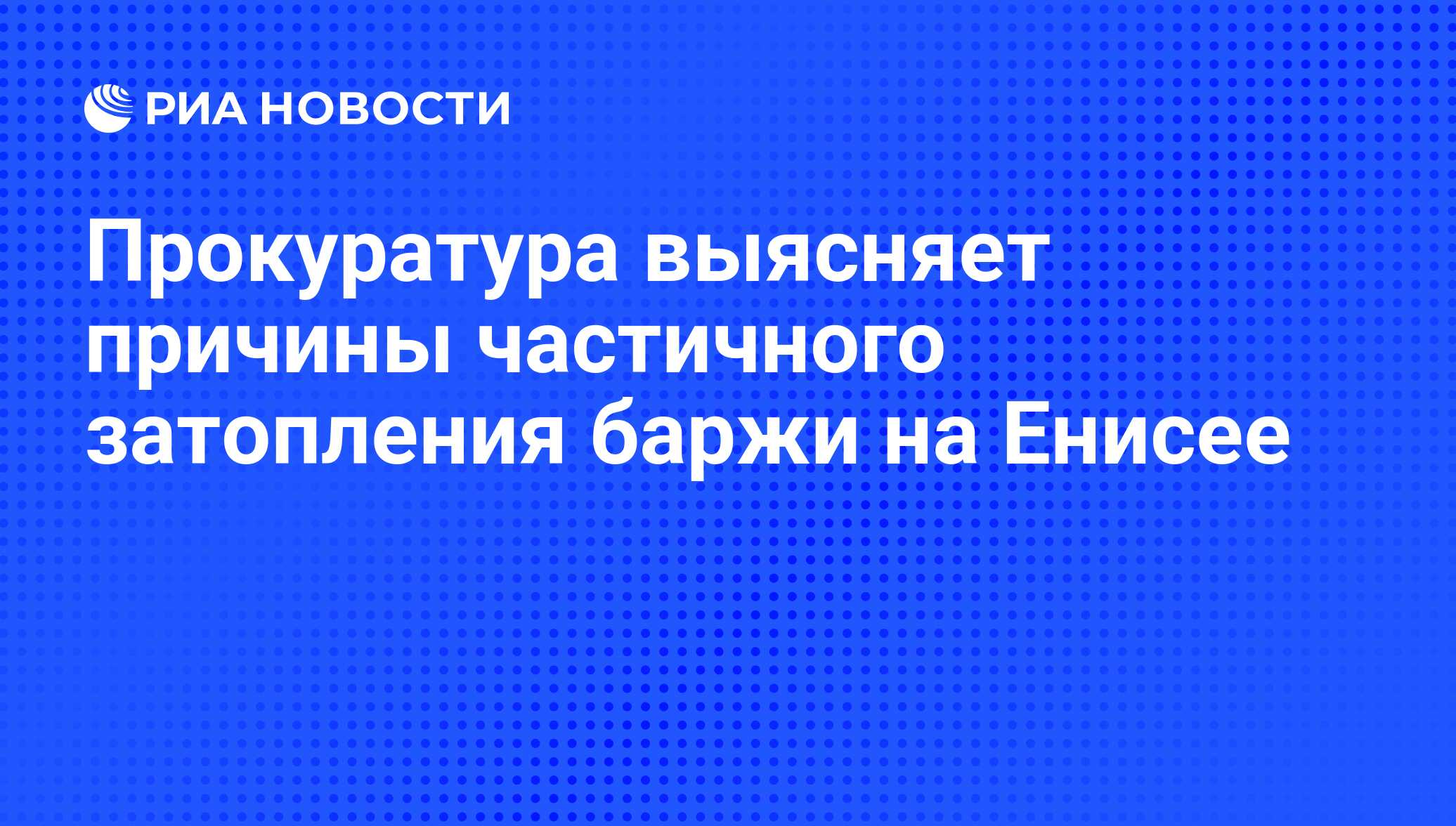 КРАСНОЯРСК, 11 мая - РИА Новости, Светлана Белькович. Прокуратура проводит проверку по факту частичного затопления баржи, произошедшего 8 мая на Енисее, пострадавших и экологической угрозы в результате инцидента нет, сообщила в среду Западно-Сибирская транспортная прокуратура.