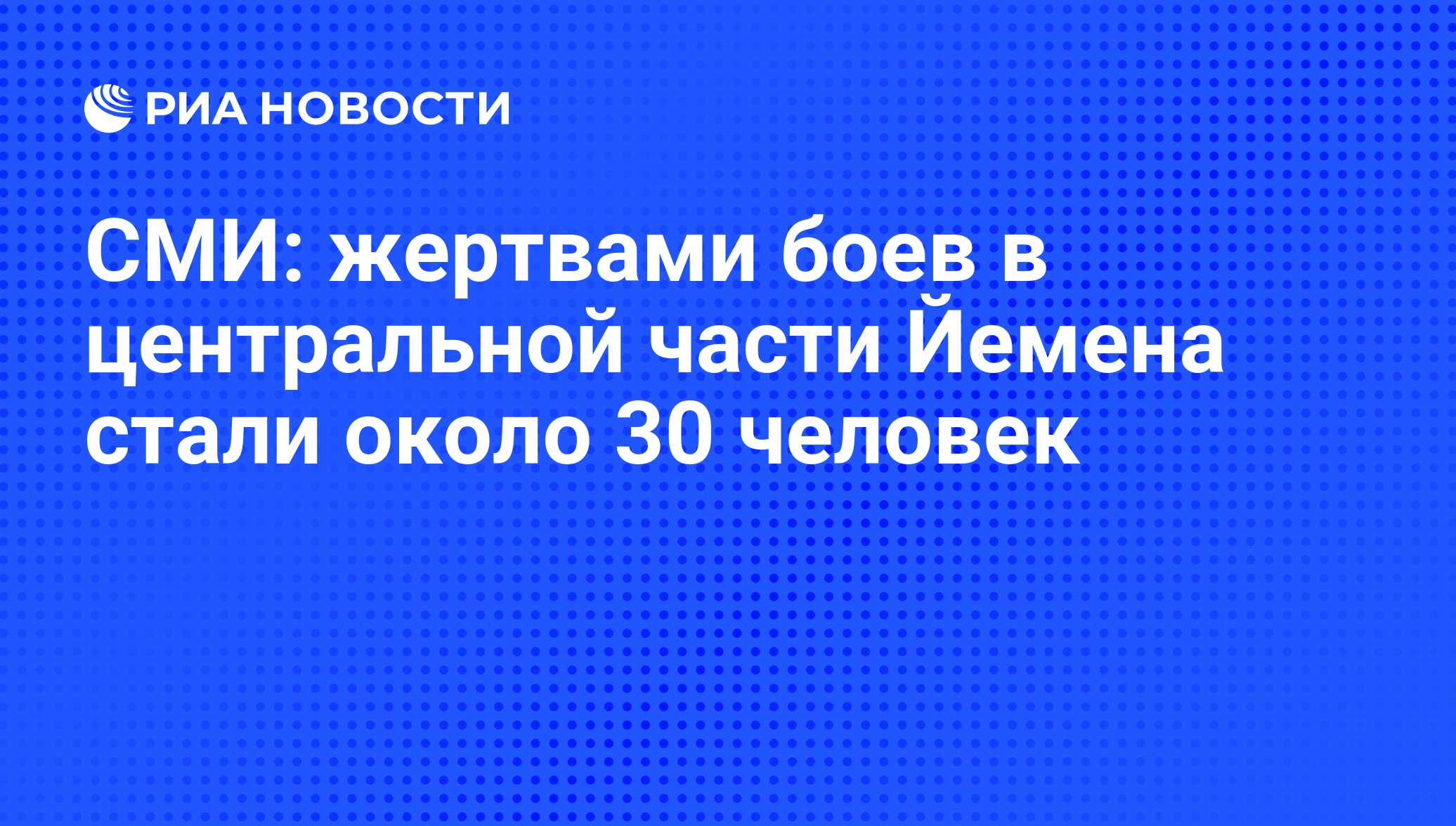 МОСКВА, 18 июн — РИА Новости. Порядка 30 человек погибли в йеменской провинции Мариб в ходе боев между повстанцами-хуситами и племенными отрядами, лояльными президенту Абд Раббу Мансуру Хади, сообщает агентство Рейтер со ссылкой на местный источник.
