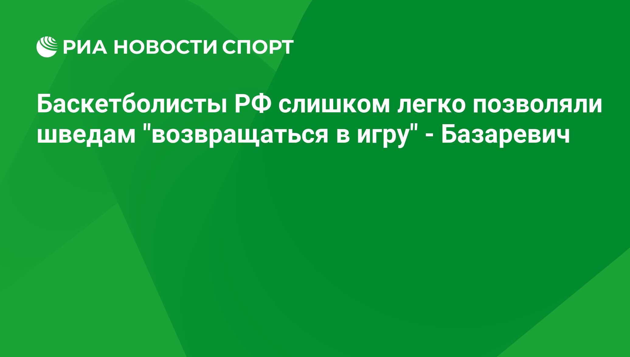 МОСКВА, 8 сен - Р-Спорт. Главный тренер сборной России Сергей Базаревич заявил, что у него "остался осадок" после победы над командой Швеции в матче отборочного турнира к чемпионату Европы, так как его баскетболисты слишком легко позволяли сопернику "возвращаться в игру".