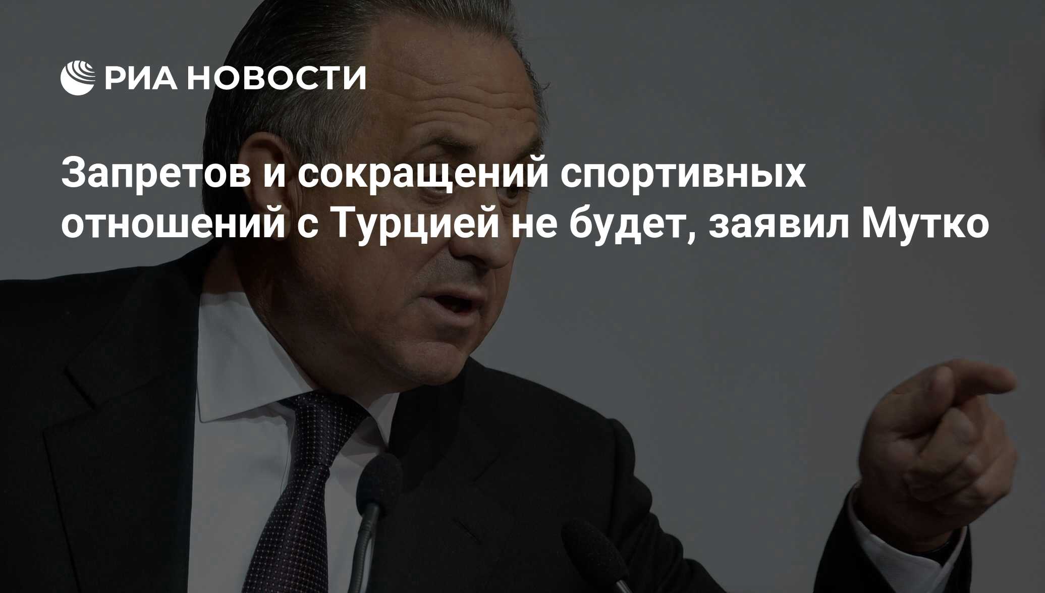 МОСКВА, 20 дек — Р-Спорт, Артем Калинин. Никаких запретов и сокращений спортивных отношений с Турцией в связи с убийством российского посла в Анкаре не будет, заявил глава Российского футбольного союза (РФС) и вице-премьер правительства РФ по вопросам физкультуры, спорта и молодежной политики Виталий Мутко.