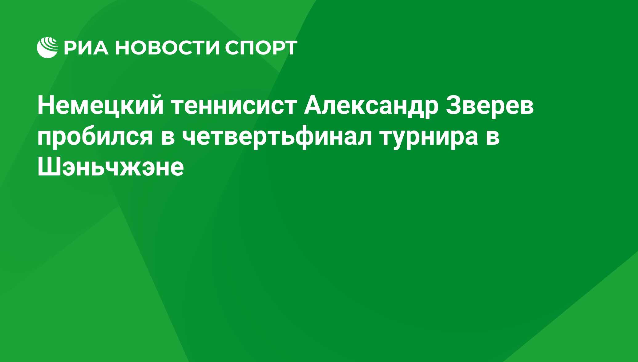 Немецкий теннисист Александр Зверев пробился в четвертьфинал турнира в Шэньчжэне