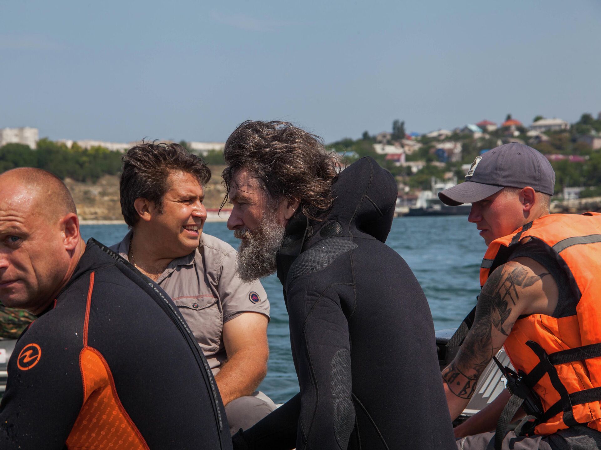Глубина на месте водолазных работ составляет 16-17 метров. Погружение продлилось 25 минут. Вместе с путешественником погружение совершили еще несколько водолазов - сотрудники Нахимовского училища и МЧС.