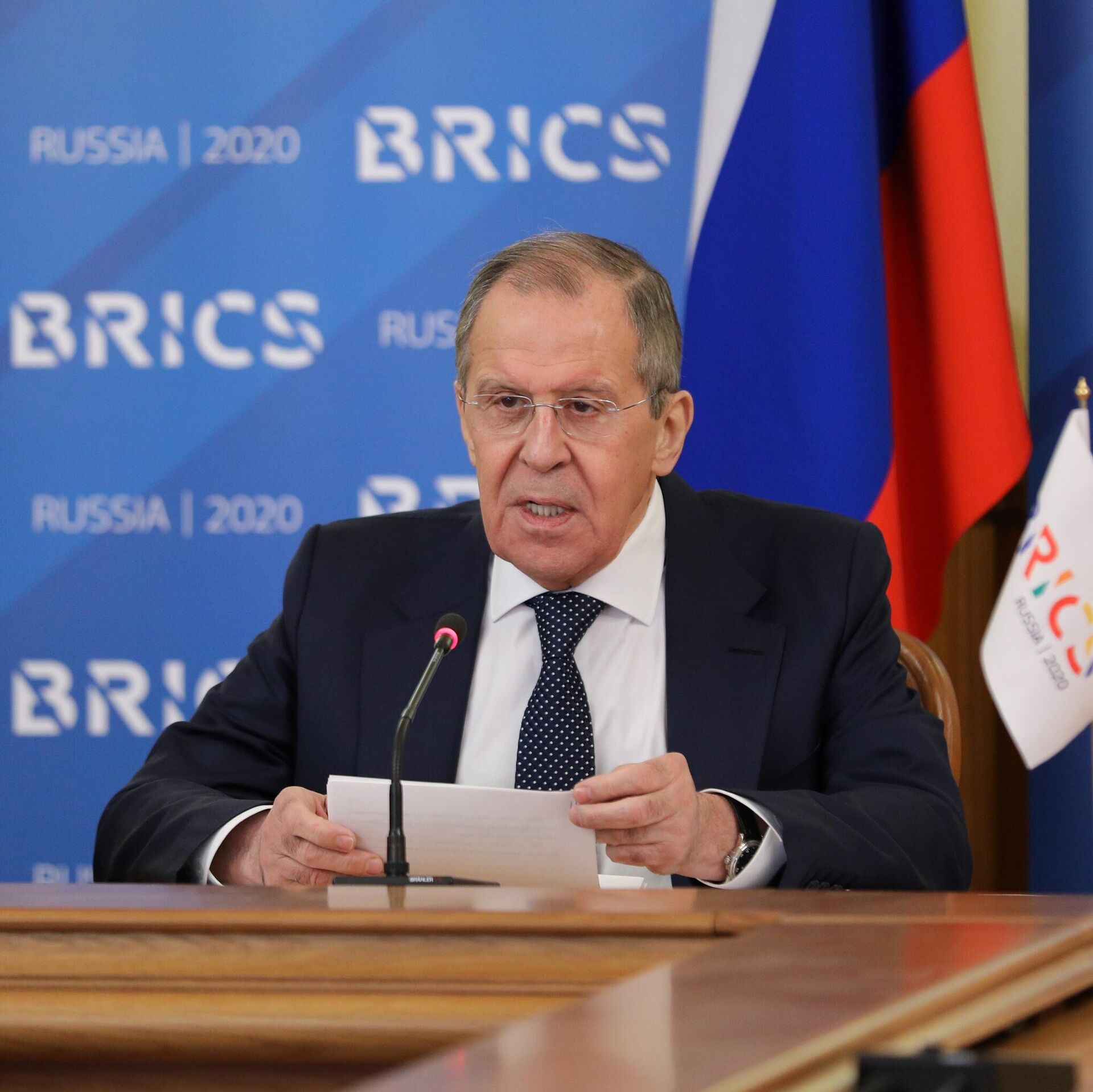 "Только что состоялась очень содержательная, конкретная видеоконференция министров иностранных дел стран-участниц БРИКС, она состоялась по инициативе РФ. Мы являемся в этом году председателями в БРИКС", - сказал Лавров на пресс-конференции по итогам неформального СМИД БРИКС в формате видеоконференции.