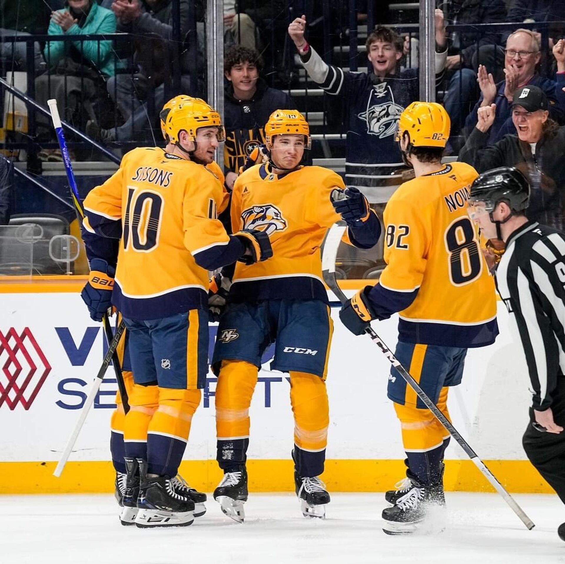Встреча в Нэшвилле завершилась со счетом 7:5 (1:4, 2:1, 4:0) в пользу хозяев. У гостей шайбы забросили Маклин Селебрини (2-я минута), Люк Кунин (12), Микаэль Гранлунд (12, 25) и Джейк Уолман (20). В составе хозяев отличились Томми Новак (13), Федор Свечков (33), Джастин Бэррон (34), Джонатан Маршессо (41), Роман Йоси (46), Ник Бланкенбург (49) и Филип Форсберг (59).