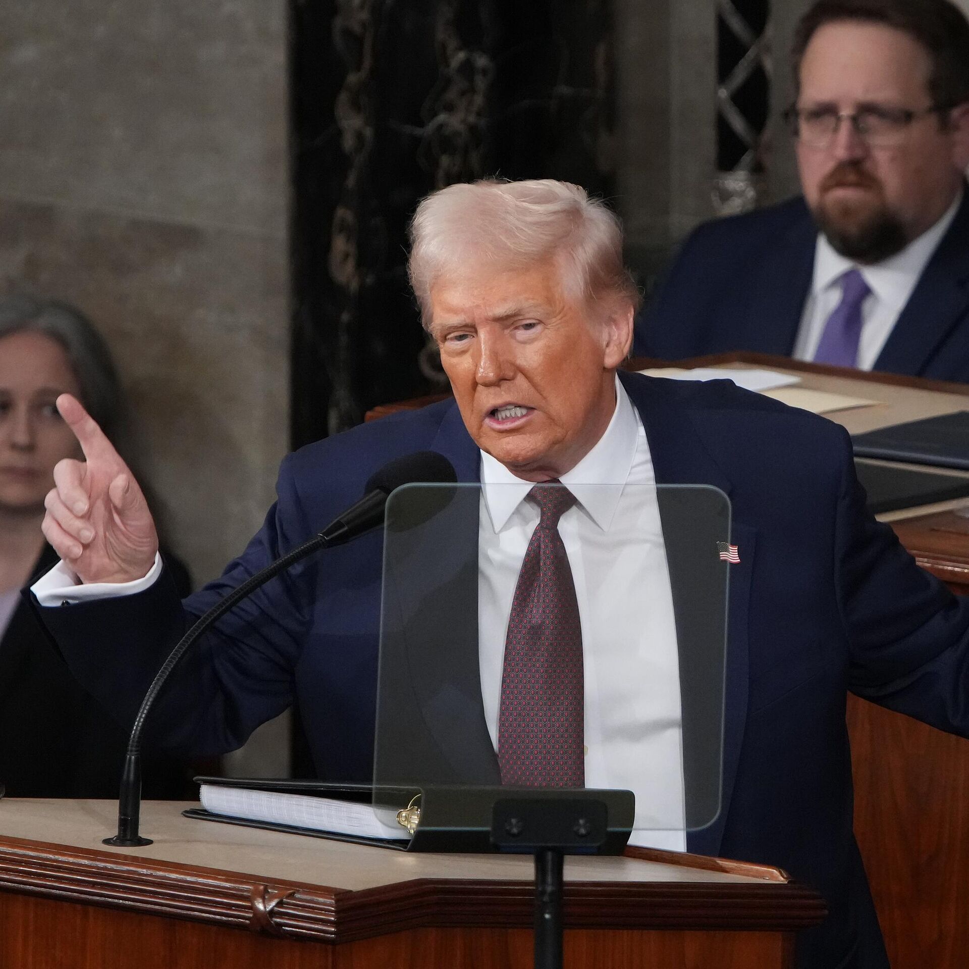 "Сегодня вечером я рад объявить, что мы только что задержали главного террориста, ответственного за это злодеяние, и прямо сейчас он направляется сюда, чтобы предстать перед мечом американского правосудия", – сказал Трамп в ходе обращения к конгрессу.