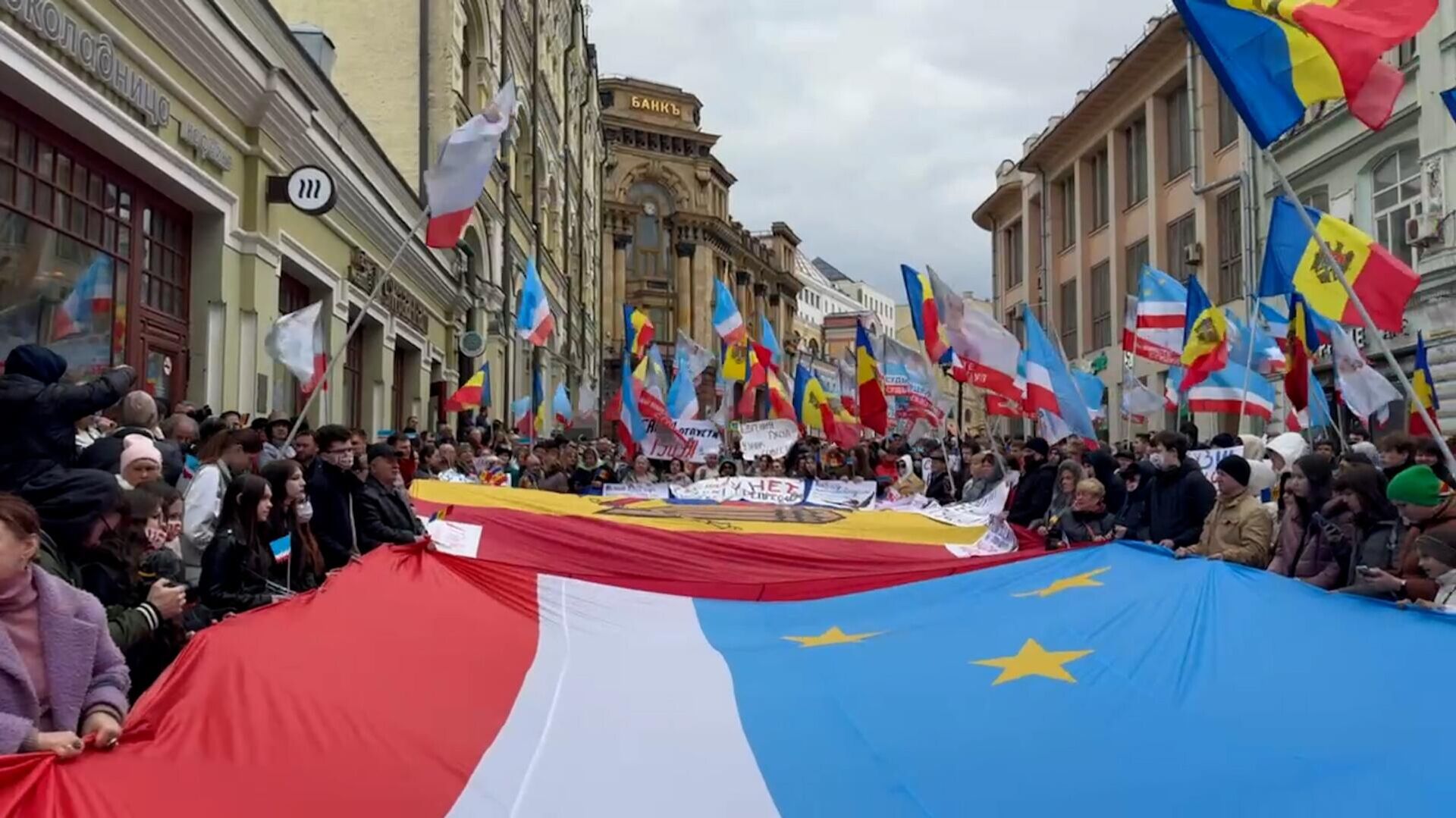 МОСКВА, 30 мар - РИА Новости. Молдавская и гагаузская диаспоры вышли на протест у здания посольства Молдавии в Москве в связи с задержанием и продлением ареста башкана Гагаузии Евгении Гуцул, передает корреспондент РИА Новости.