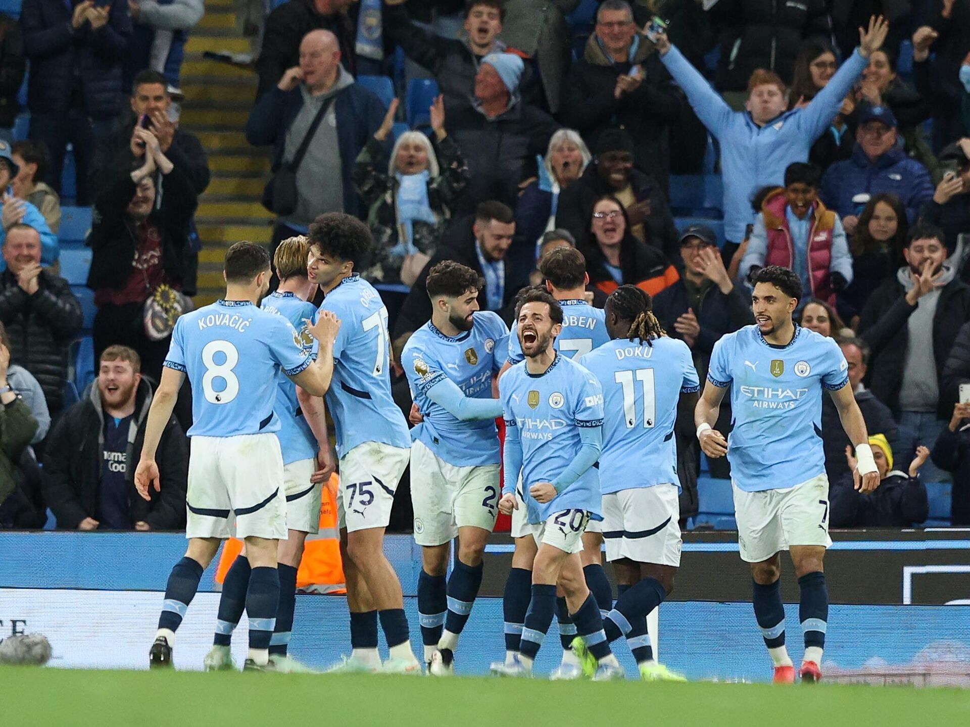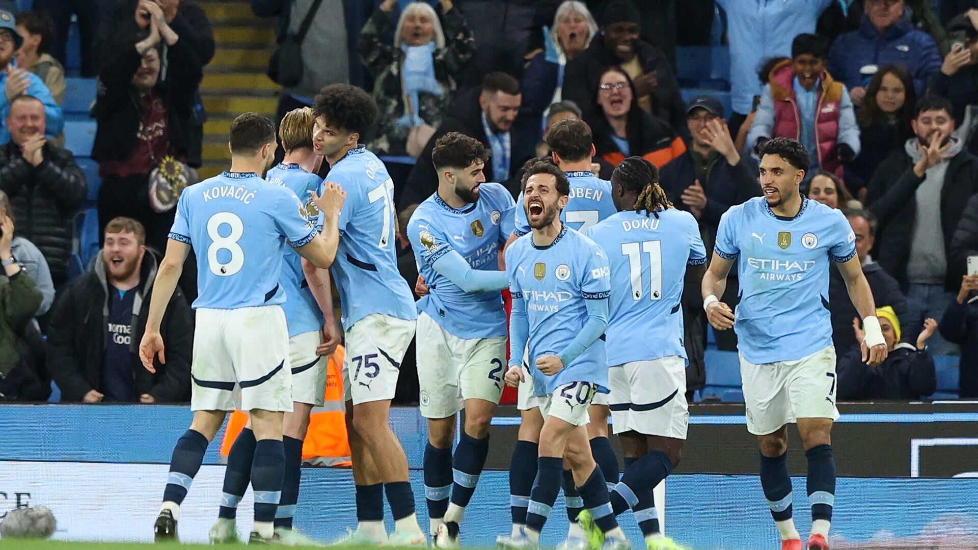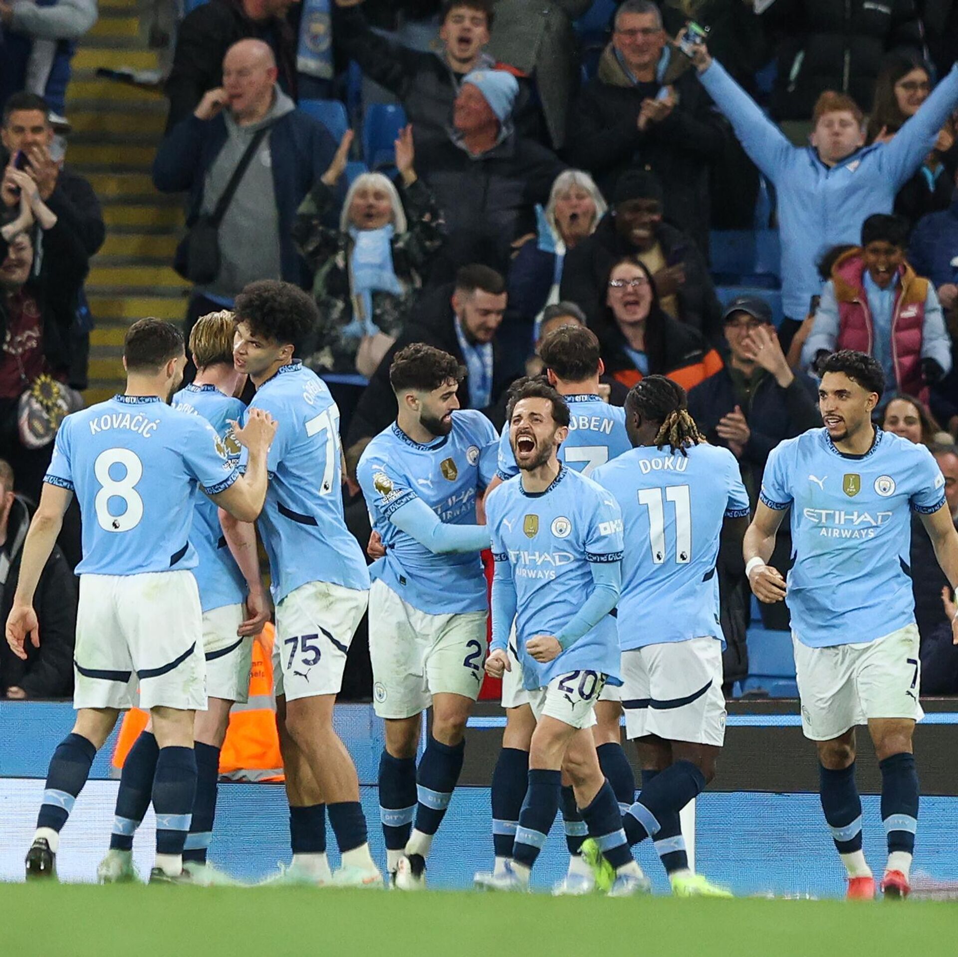 Футболисты "Манчестер Сити" на своем поле обыграли "Астон Виллу" в матче 34-го тура чемпионата Англии. РИА Новости Спорт, 23.04.2025