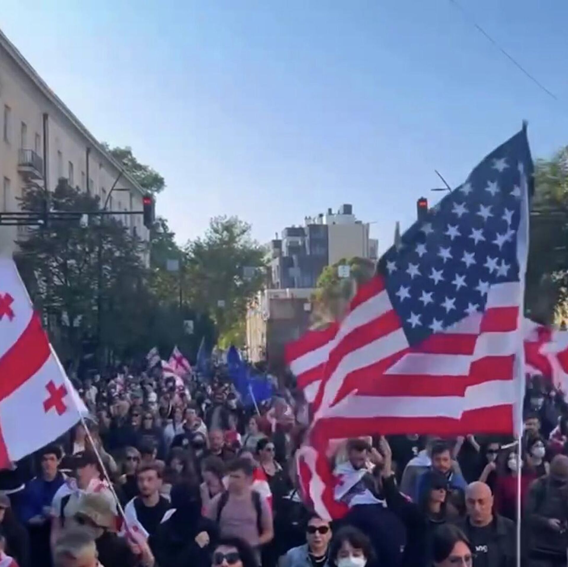 Тысячи граждан Грузии двигаются шествием к проспекту Руставели в Тбилиси для участия в анонсированном митинге оппозиции, передает корреспондент РИА Новости. РИА Новости, 04.10.2025