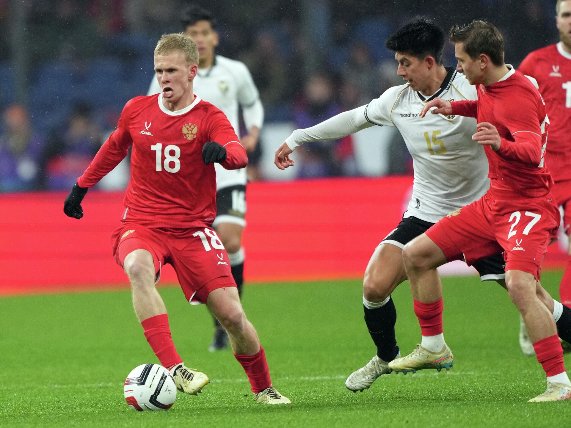 Сборная России по футболу без проблем разобралась с командой Боливии в товарищеском матче. Встреча прошла на московском стадионе "Динамо" имени Льва Яшина и завершилась разгромом южноамериканцев, пропустивших три безответных гола и позволивших нашим парням одержать историческую со статистической точки зрения победу.