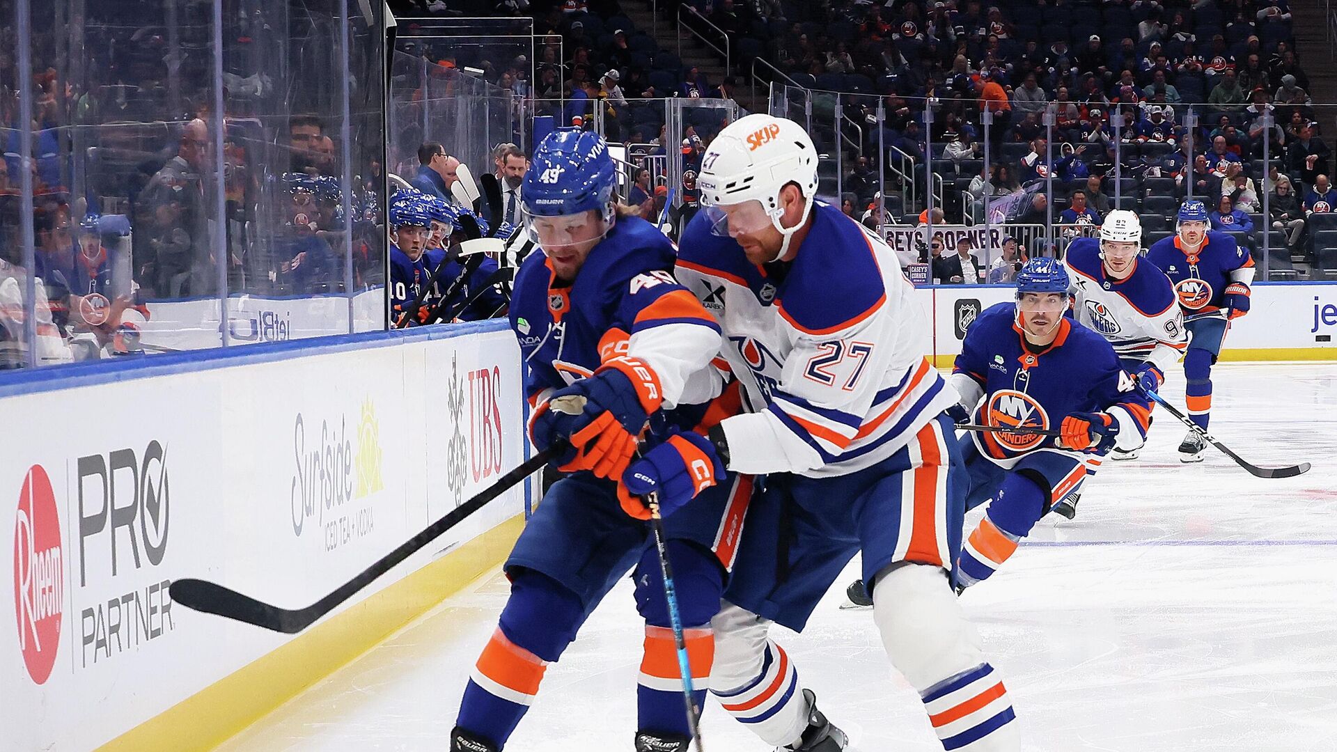 Хоккеисты "Нью-Йорк Айлендерс" обыграли "Эдмонтон Ойлерз" в матче регулярного чемпионата Национальной хоккейной лиги (НХЛ). РИА Новости Спорт, 17.10.2025