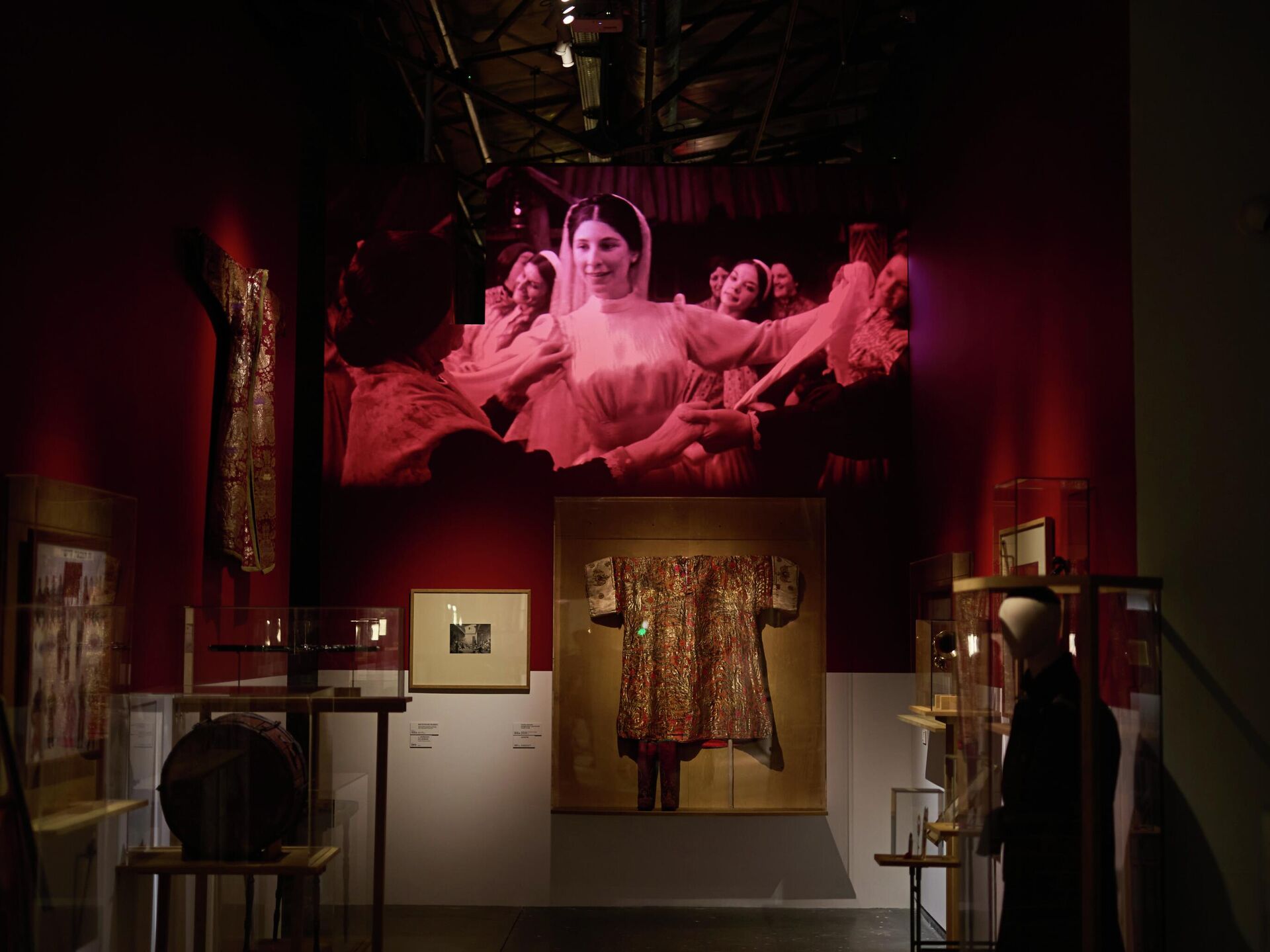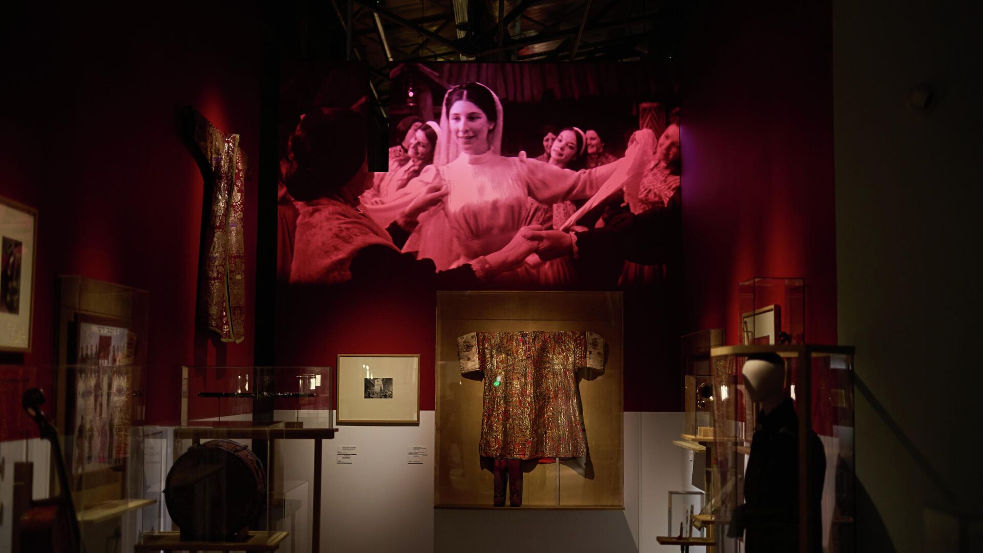 Последний зал посвящен свадебному пиру. Здесь — хроника настоящей церемонии, тематические картины, музыкальные инструменты клезмеров, которые подхватывали веселье и исполняли что-то очень радостное.