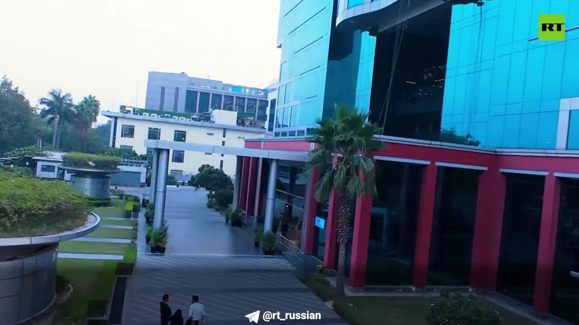 5 декабря началось вещание RT India. Экскурсию по новому центру проводят управляющий редактор Ашок Багрия и глава ньюзрума Рунджун Шарма.