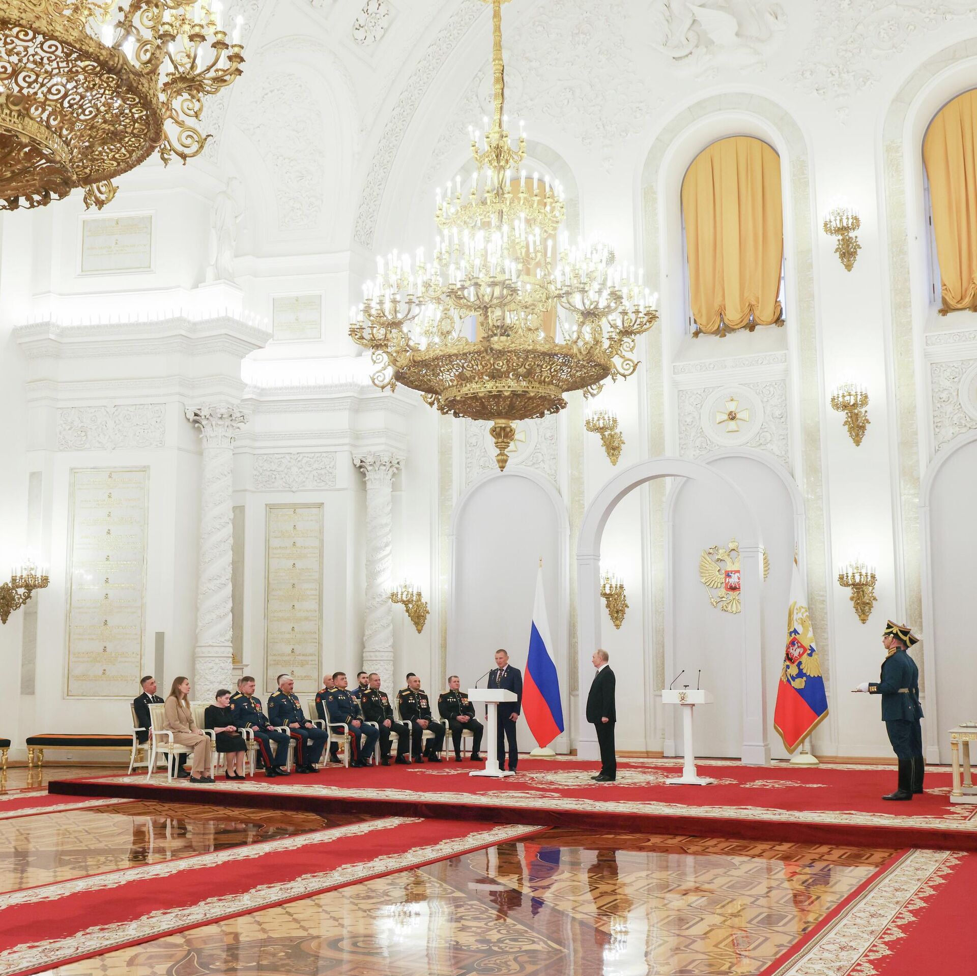 Президент РФ Владимир Путин вручил медаль "Золотая Звезда" Героя Российской Федерации сержанту Виталию Кондратову на торжественном мероприятии по случаю празднования Дня Героев Отечества.
