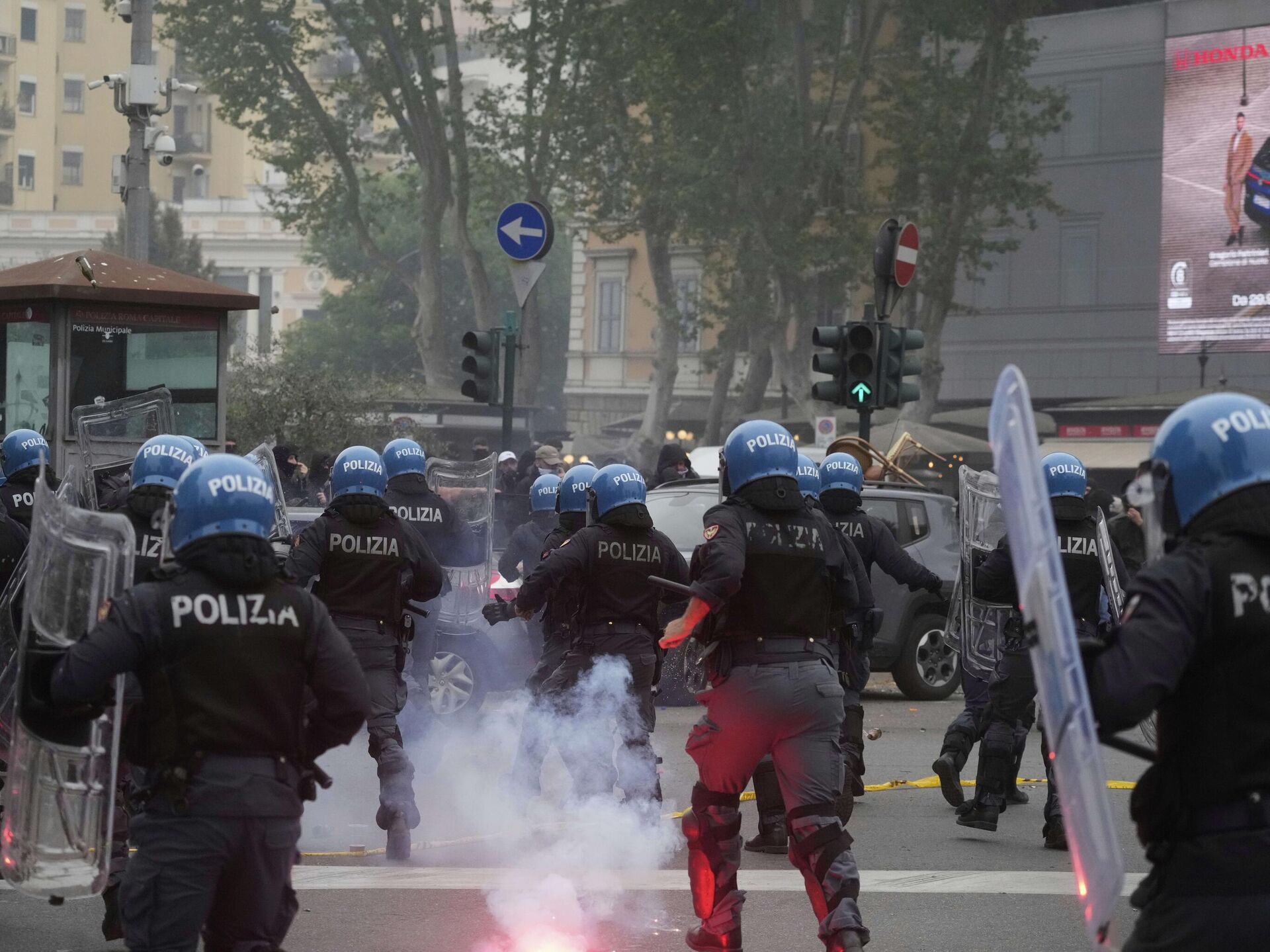 По информации Sportitalia, которое опубликовало в соцсети Х видео с места происшествий, в результате столкновений были сожжены фургон, скутер, автомобиль и семь мусорных контейнеров.
