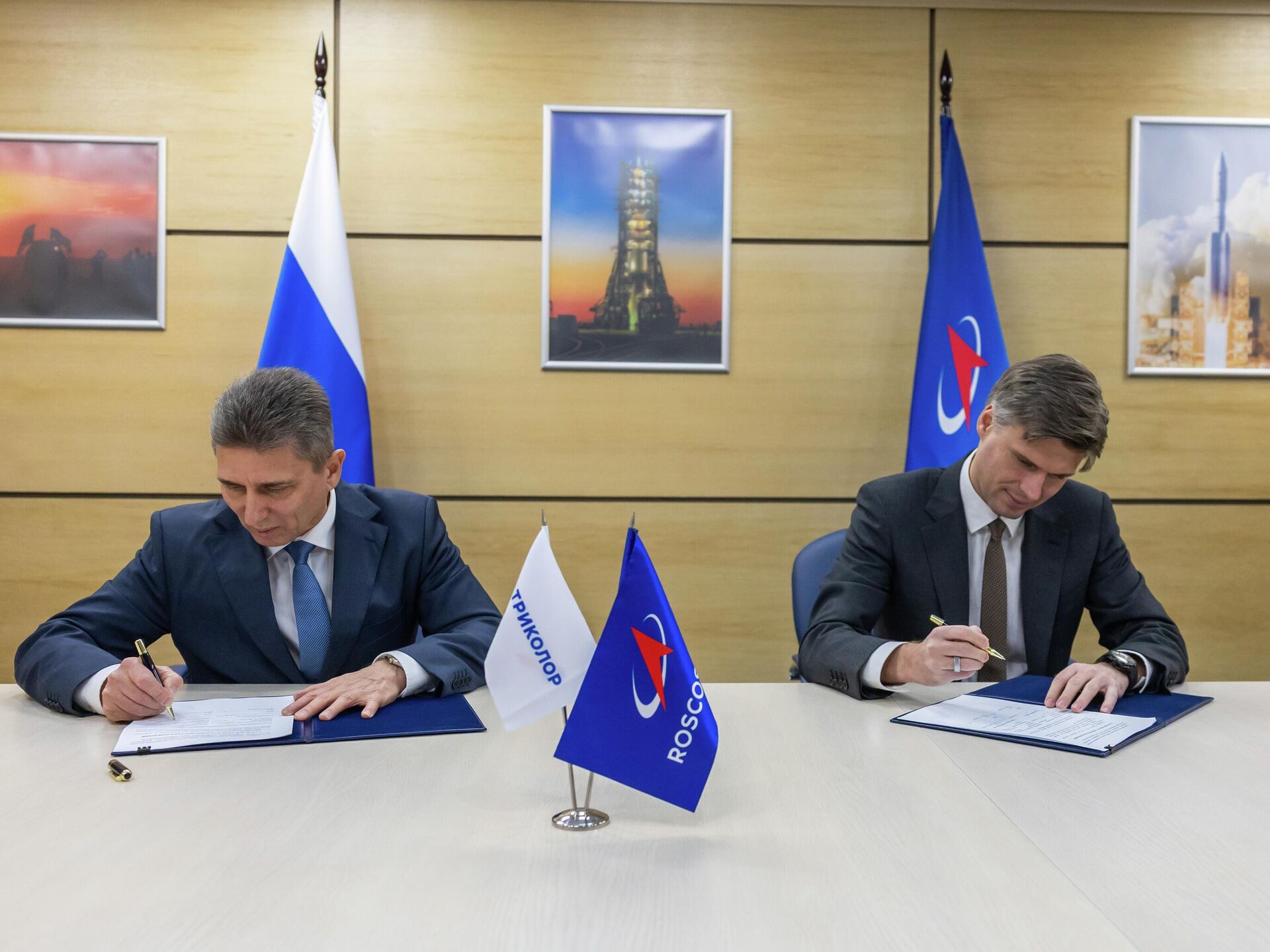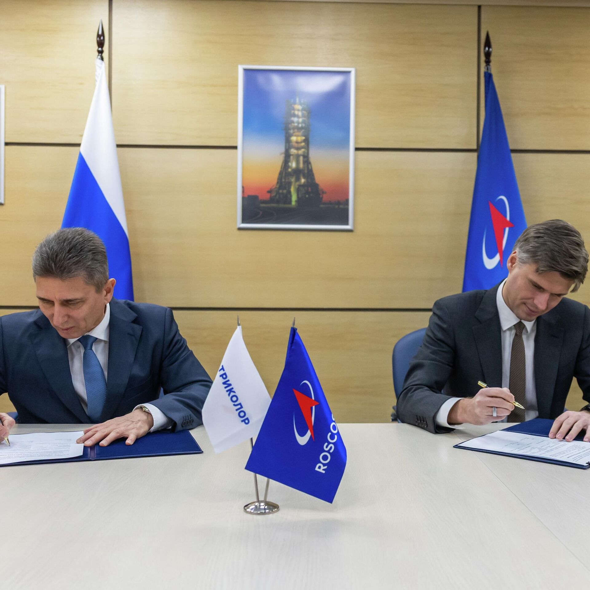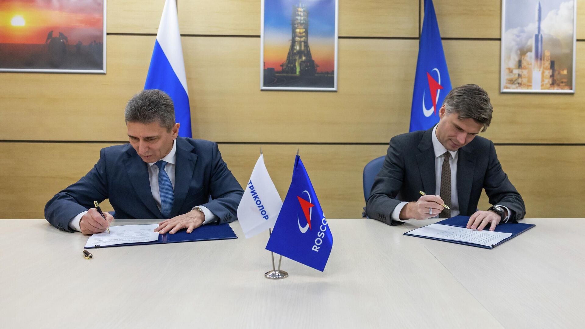 Меморандум скрепили подписями председатель Совета директоров НАО "Национальная спутниковая компания" (бренд "Триколор") Андрей Ткаченко и генеральный директор госкорпорации "Роскосмос" Дмитрий Баканов.