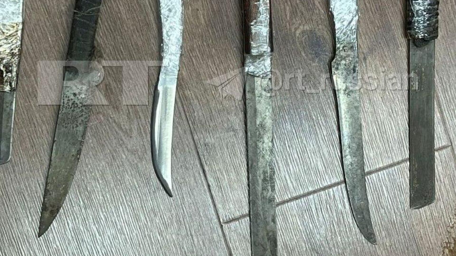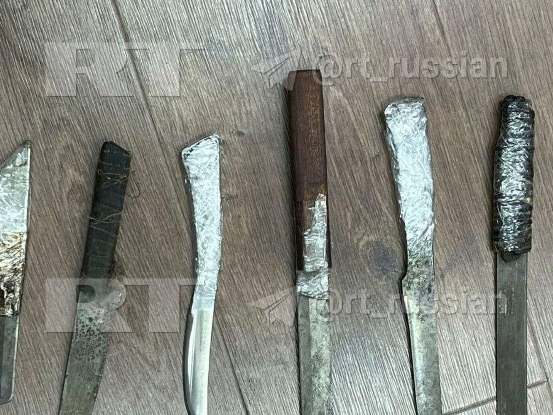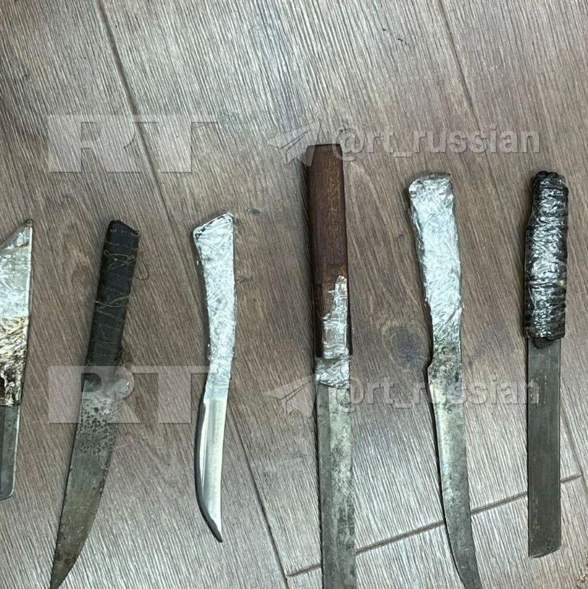 При обысках у подозреваемых нашли заточки, лоскуты ткани, похожие на флаг террористической организации, и мобильные телефоны с террористическими материалами.