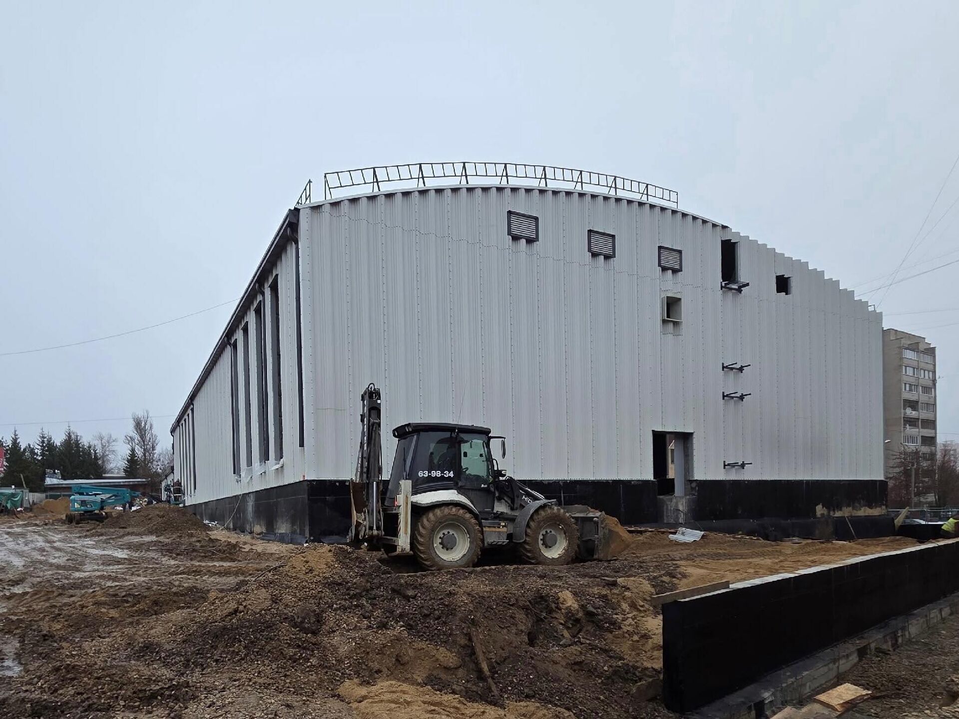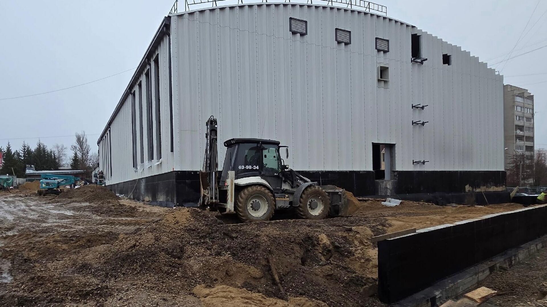 На сегодняшний день завершены основные конструктивные работы: устроена фундаментная плита, практически завершен монтаж металлического каркаса здания и возведены две монолитные подпорные стены. На объект уже подведены инженерные сети водоснабжения и канализации. Со следующей недели строители приступят к подведению газоснабжения, после чего начнется этап внутренней отделки помещений.
