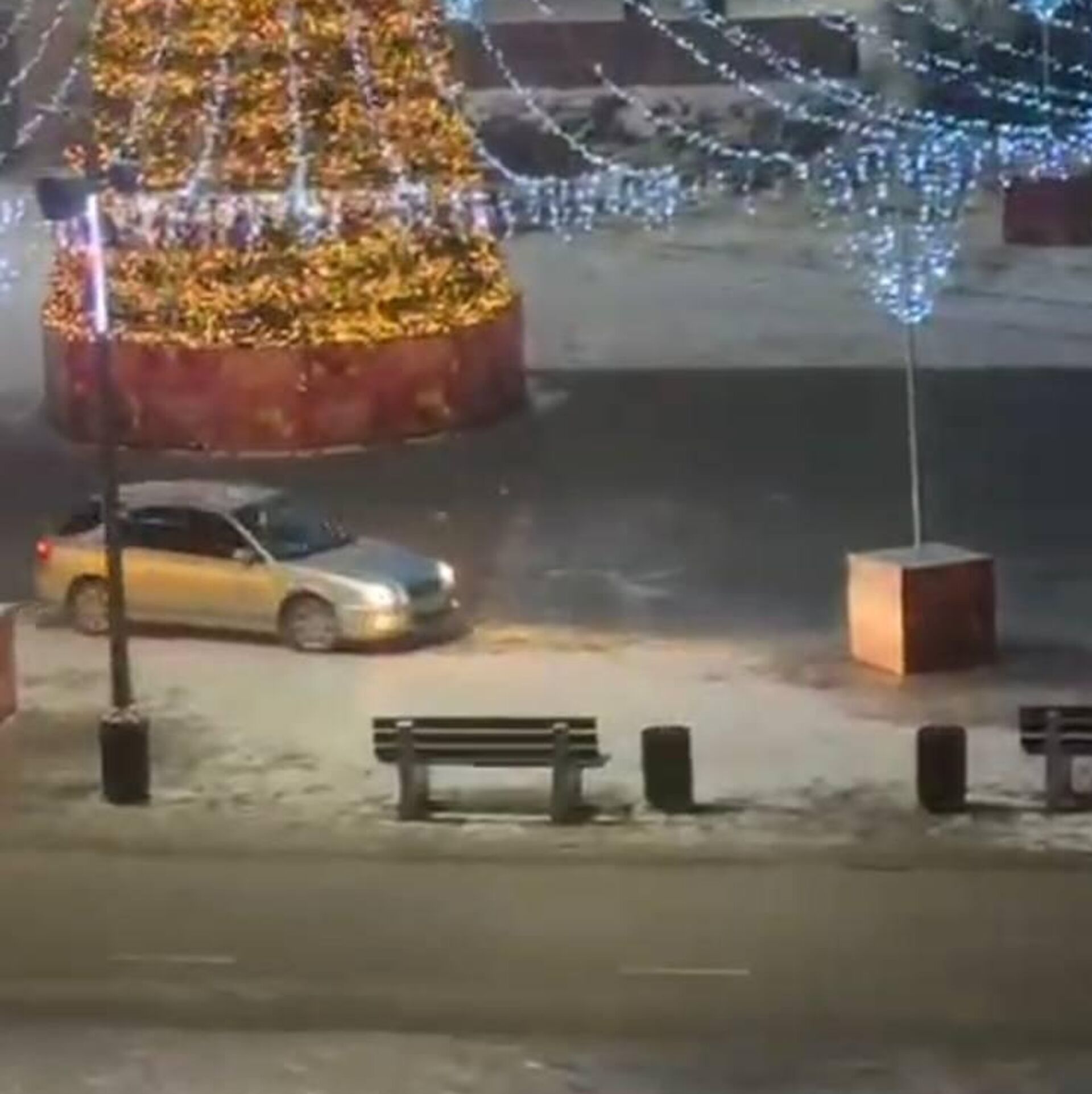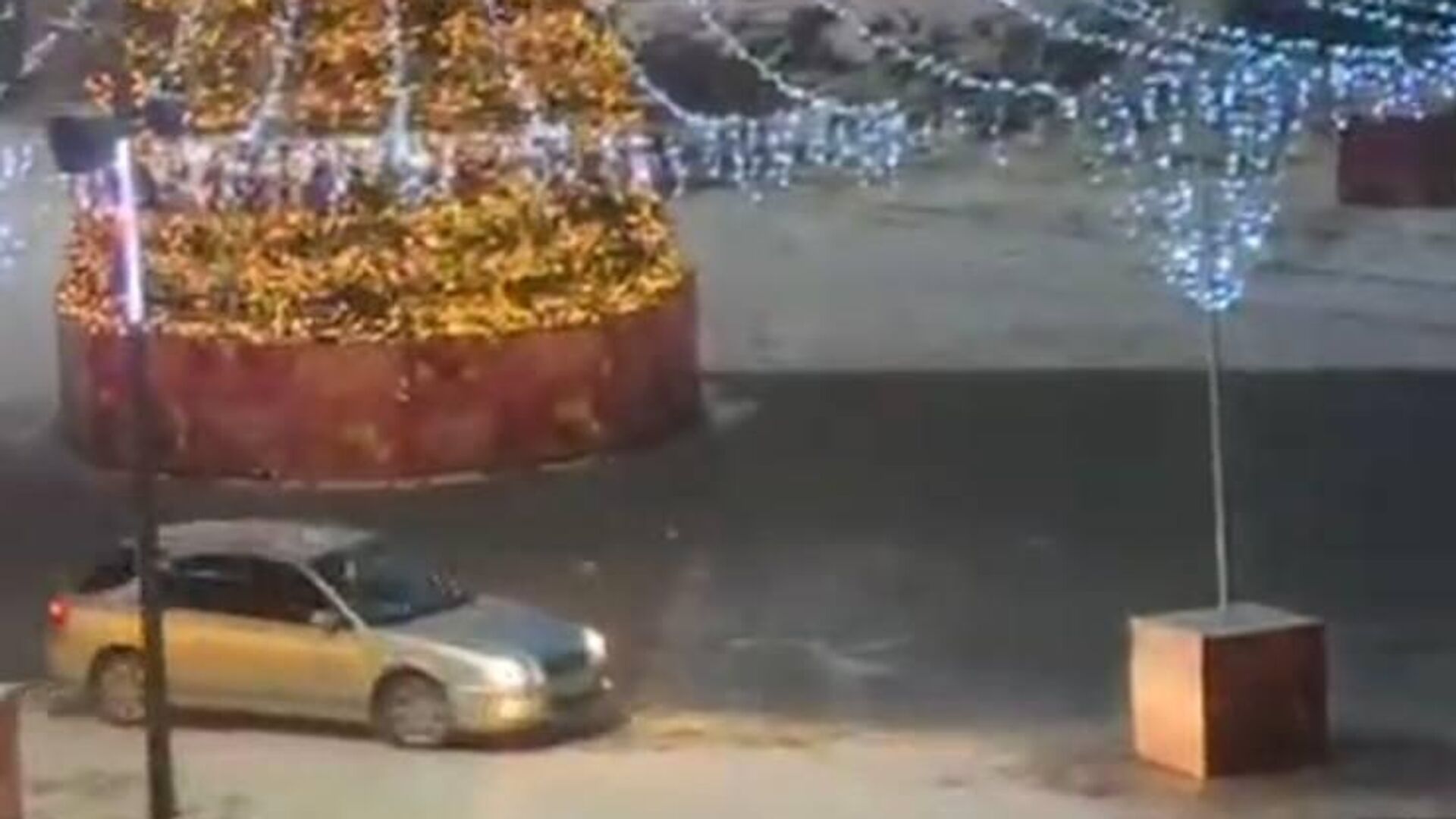 В соцсетях разошлось видео, на котором водитель Subaru Impreza врезается в одну из опор новогодней конструкции на центральной площади Партизанска у здания мэрии, затем ездит вокруг новогодней ели, пытаясь на поворотах уйти в занос.
