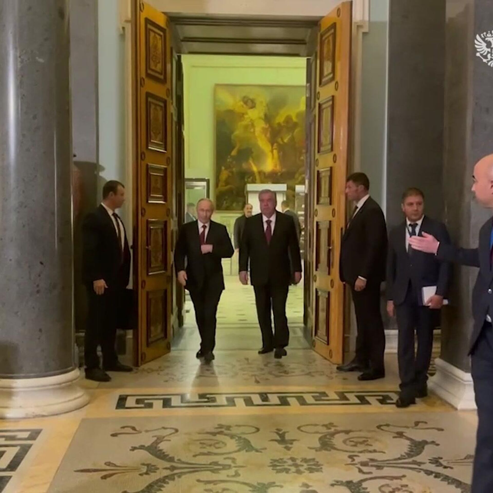 Начало встречи Путина с Рахмоном после саммита СНГ